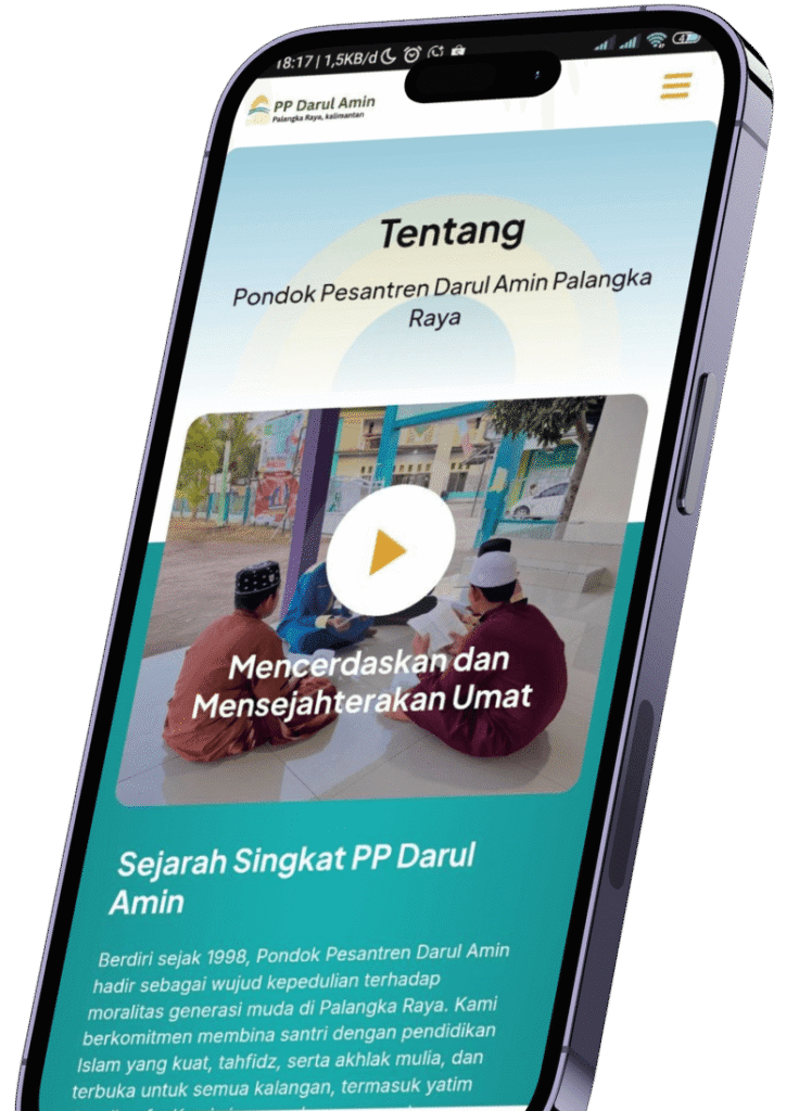 Berdiri sejak 1998, Pondok Pesantren Darul Amin hadir sebagai wujud kepedulian terhadap moralitas generasi muda di Palangka Raya. Kami berkomitmen membina santri dengan pendidikan Islam yang kuat, tahfidz, serta akhlak mulia, dan terbuka untuk semua kalangan, termasuk yatim dan dhuafa. Kami siap membangun umat yang Islami, harmonis, dan sejahtera.